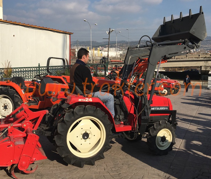 Rebuild tractor MITSUBISHI MTX 24 is a powerful and useful tool for amateur or profesional farmer! It is a 4wd 24 PS with water cooling 4 pistons engine. We sell it with original Mitsubishi rottary tiller. We can also provide parts and attachments. Contact us for prices and offers. TRACTOR MITSUBISHI MTX 24 4WD / PS:24 / ENGINE CYLINDERS:4 / ROTTARY TILLER: YES / FRONT LOADER ABILITY : YES / www.trakter.com Tagtalenidis