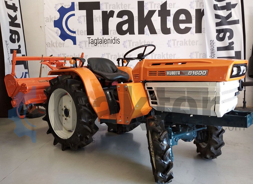 Rebuild tractor Kubota B1600 is a powerful and useful tool for amateur or profesional farmer! It is a 4wd 16 PS with water cooling 3 pistons engine. We sell it with original Kubota rottary tiller. We can also provide parts and attachments. Contact us for prices and offers. KUBOTA TRACTOR B1600 4WD / PS:16 / ENGINE CYLINDERS:3 / ROTTARY TILLER: YES / FRONT LOADER ABILITY : YES / www.trakter.com Tagtalenidis