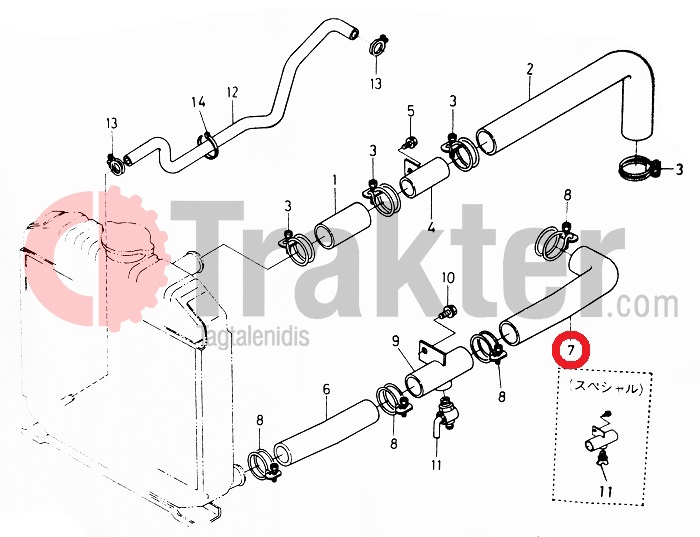 COLLAR PARA RADIADOR INFERIOR DE AGUA 2 DE 2 KUBOTA ORIGINAL