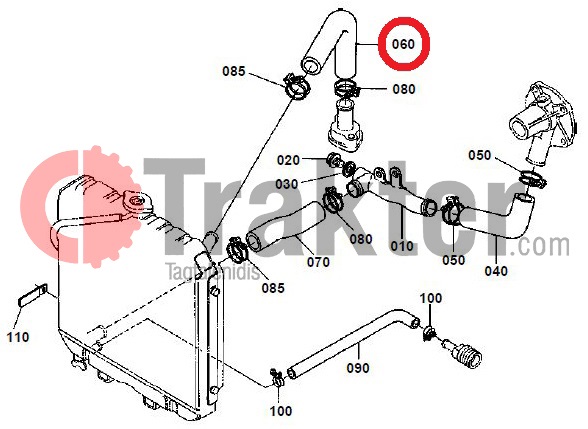 COLLAR SUPERIOR PARA RADIADOR DE AGUA KUBOTA ORIGINAL
