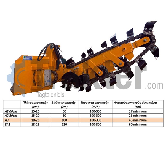 Excavation width 18-26cm Depth of excavation 100cm Excavation speed 100-300m/h Required engine power from 45hp